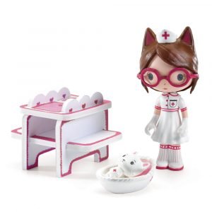 Γνωρίστε την Milou και το ιατρείο των ζώων από την σειρά Tinyly της εταιρείας Djeco. Οι ντελικάτες φιγούρες της σειράς είναι εμπνευσμένες από την Virginie Brachet. Καθεμία είναι ξεχωριστή και μοναδική με τον ιδιαίτερο σχεδιασμό της ενώ συνοδεύεται από ένα μικρό avatar και τα αξεσουάρ της. Το παιχνίδι αυτό, εξάπτει τη φαντασία των παιδιών ενώ τα βοηθά να ενισχύσουν τη συνειρμική σκέψη τους και να βελτιώσουν τον προφορικό τους λόγο. Το σετ αποτελείται από την αίθουσα του ιατρείου (10 x 10.7εκ.), το τραπέζι εξέτασης, το καλάθι ανάπαυσης, την Milou (7,5εκ.) και την Loulou, το γατάκι. Κατάλληλο για ηλικίες άνω των 4 ετών. Διαστάσεις Συσκευασίας: 12 x 10 x 12 εκ.
