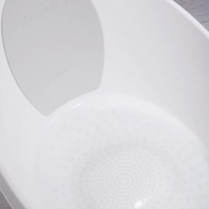 ΚΑΙΝΟΤΟΜΙΑ! Πλάτη επενδεδυμένη με αφρώδες μαλακό υλικό που όταν το πιάσετε θα διαπιστώσετε ότι είναι πιο ζεστό από το υπόλοιπο μπανάκι. Σκεφτείτε ότι όταν βυθίζετε το μωρό στο νερό έχετε ρυθμίσει την θερμοκρασία του νερού στους 37 βαθμούς. Η πλατούλα όμως ακουμπάει στο τοίχωμα και είναι πιθανόν λόγω της διαφοράς θερμοκρασίας το μωράκι σας να νιώσει άβολα. Με το ειδικό αφρώδες υλικό του Shnuggle και η πλάτη του μωρού είναι στα ζεστά.