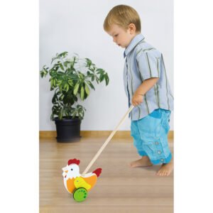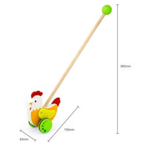 Ξύλινη, σπρωχτή τρεχαλίτσα ‘Κοτούλα’ που κινεί τα χέρια του καθώς κινείται, από την εταιρεία Viga. Δώστε στο παιδί σας έναν διασκεδασικό τρόπο για να περπατήσει! Κατασκευασμένη από μασίφ ξύλο καουτσουκόδεντρου και με χρώματα μη τοξικά, ασφαλή για τα παιδιά.